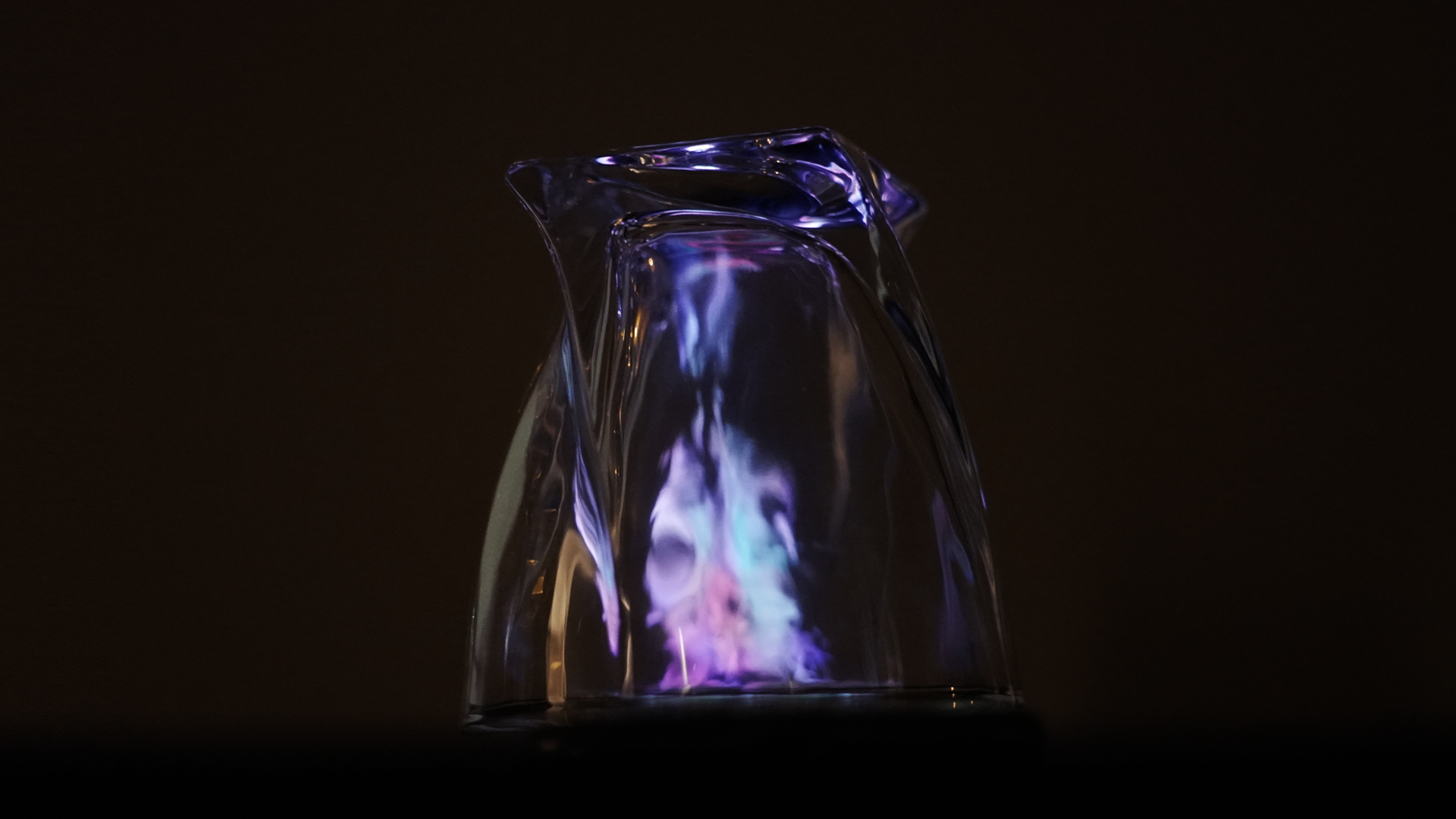 In the dreamlike installation art piece "Imprisoned Love," I employ the interplay of light and color to delve into the contradictions and struggles inherent in love and freedom. I opted for Lumia Art, a dynamic artistic form that utilizes light and color to capture the essence of hues. Additionally, the Pepper's Ghost technique introduces a dreamlike interaction of reality and illusion within the artwork. Through the flames in a glass, I intended to symbolize emotions that are both intense and constrained, offering a reflection of the struggles within the heart.